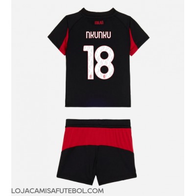 Camisa de Futebol AC Milan Christopher Nkunku #18 Equipamento Principal Infantil 2025-26 Manga Curta (+ Calças curtas)