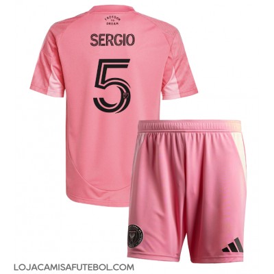 Camisa de Futebol Inter Miami Sergio Busquets #5 Equipamento Principal Infantil 2025-26 Manga Curta (+ Calças curtas)