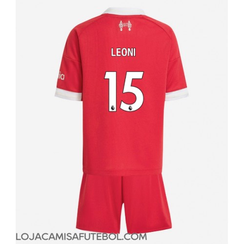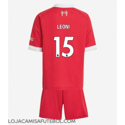 Camisa de Futebol Liverpool Giovanni Leoni #15 Equipamento Principal Infantil 2025-26 Manga Curta (+ Calças curtas)