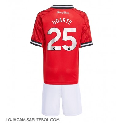 Camisa de Futebol Manchester United Manuel Ugarte #25 Equipamento Principal Infantil 2025-26 Manga Curta (+ Calças curtas)