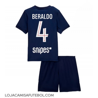 Camisa de Futebol Paris Saint-Germain Lucas Beraldo #4 Equipamento Principal Infantil 2025-26 Manga Curta (+ Calças curtas)