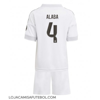 Camisa de Futebol Real Madrid David Alaba #4 Equipamento Principal Infantil 2025-26 Manga Curta (+ Calças curtas)