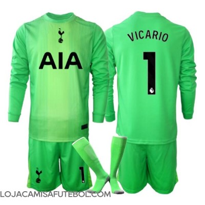 Camisa de Futebol Tottenham Hotspur Guglielmo Vicario #1 Goleiro Equipamento Principal Infantil 2025-26 Manga Comprida (+ Calças curtas)